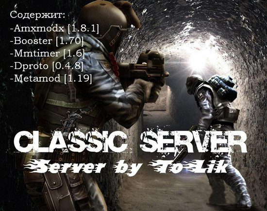 Содержит: -Amxmodx [1.8.1] -Booster [1.70] -Mmtimer [1.6] -Dproto [0.4.8] -Metamod [1.19]